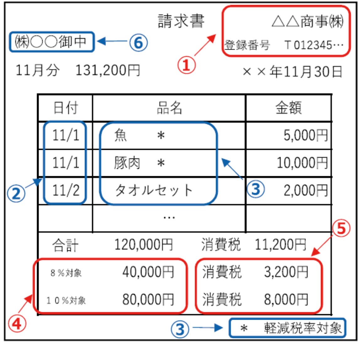 適格請求書とは、登録番号、軽減税率8%と標準税率10%の区分、消費税額等を表示した請求書等のことです。売手が買手に対して、正確な適用税率や消費税額等を伝えることを目的としています。