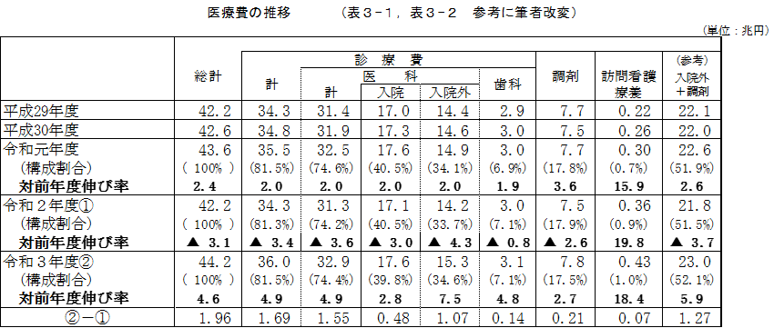 厚生労働省が毎月公表している「医療費の動向」ですが、令和3年度医療費の動向(概算医療費)の集計結果をまとめたものがこの9月16日に公表されました。